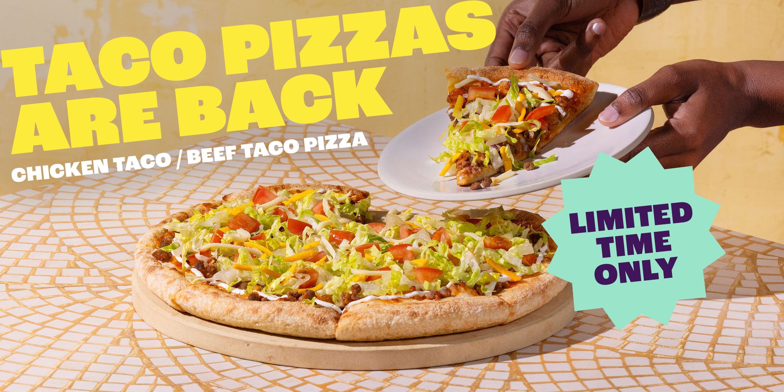 Buy a 14" large Chicken or Beef Taco pizza and get an 8 pc Churro Bites for only $2.75. Delivery fee not included.
